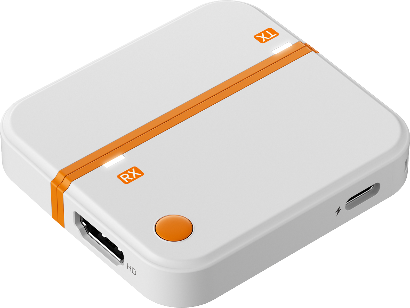 Connect transmitter to source, receiver to display — automatic pairing in seconds.